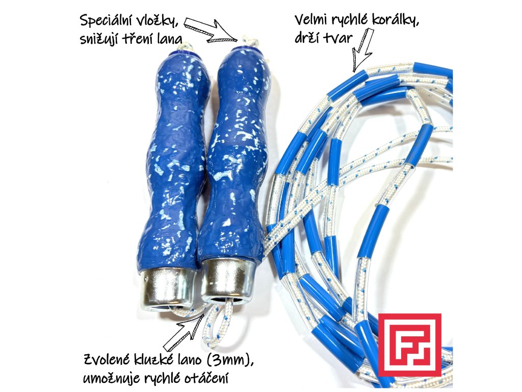 Je velmi oblíbené pro skvělý pocit ze skákání, vhodné pro rychlé skákání. Snadno si s ním můžeš zaskákat kdekoli. Případné poškození korálků, lze opravit jejich výměnou. Jde o konstrukci určenou jak pro ženy, tak pro muže (unisex).